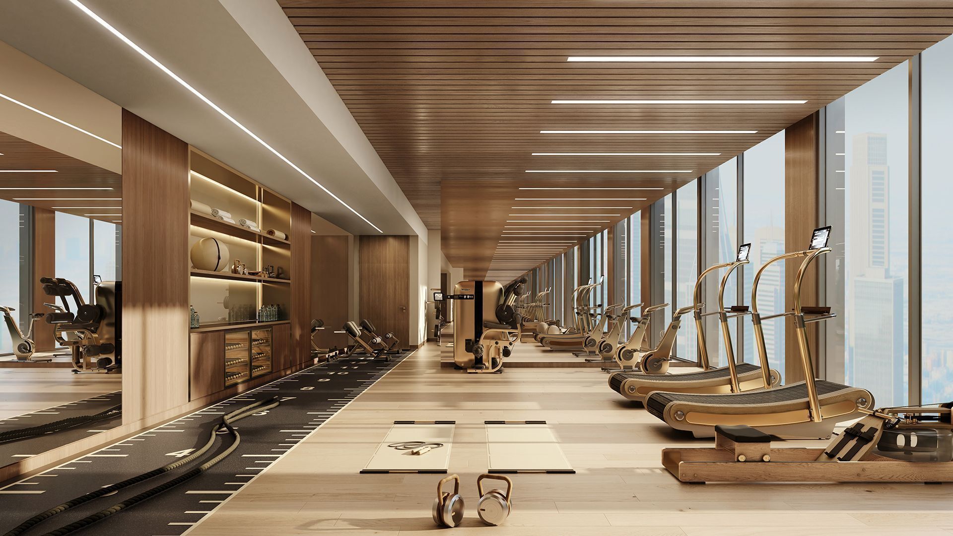 Fully equipped fitness center, yoga studio, and wellness suites