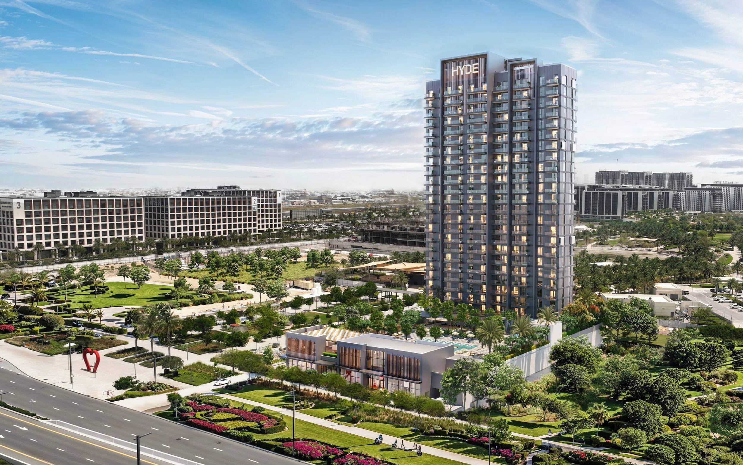 Welcome to Hyde Residences, the first-ever lifestyle-branded residential project in Dubai Hills Estate. Developed by City View Developments in partnership with Ennismore and Evolutions, and operated under the Hyde Hotels brand, this exclusive development offers a bold new take on modern living—blending artistic expression, boutique luxury, and resort-style amenities into one dynamic address.