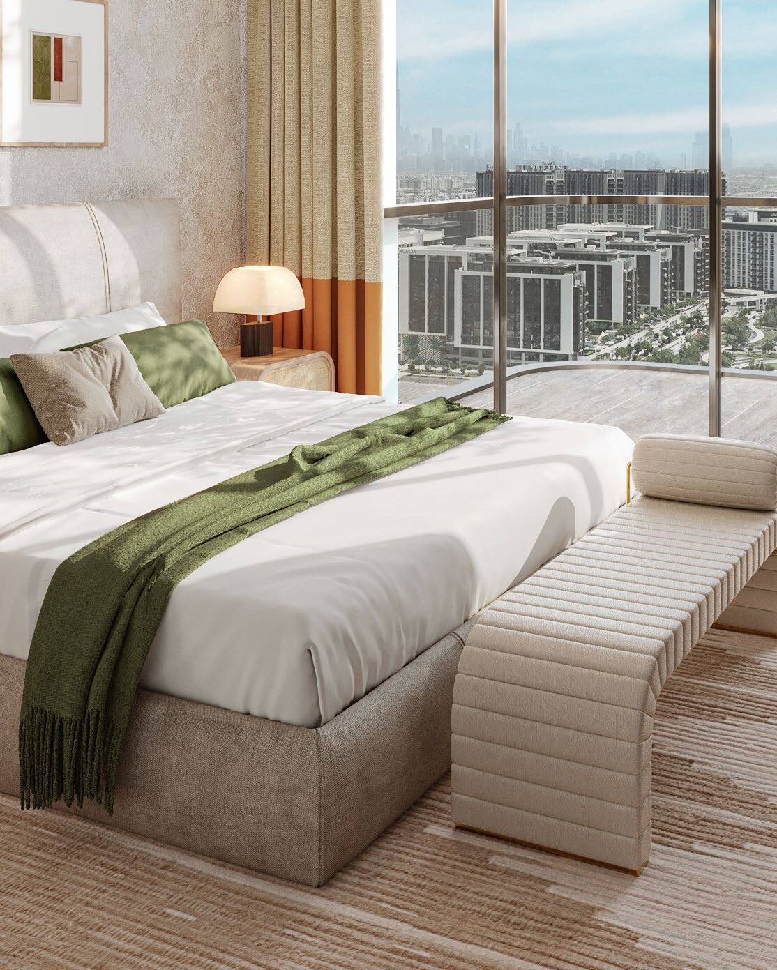 - Floor-to-ceiling windows with skyline or park views