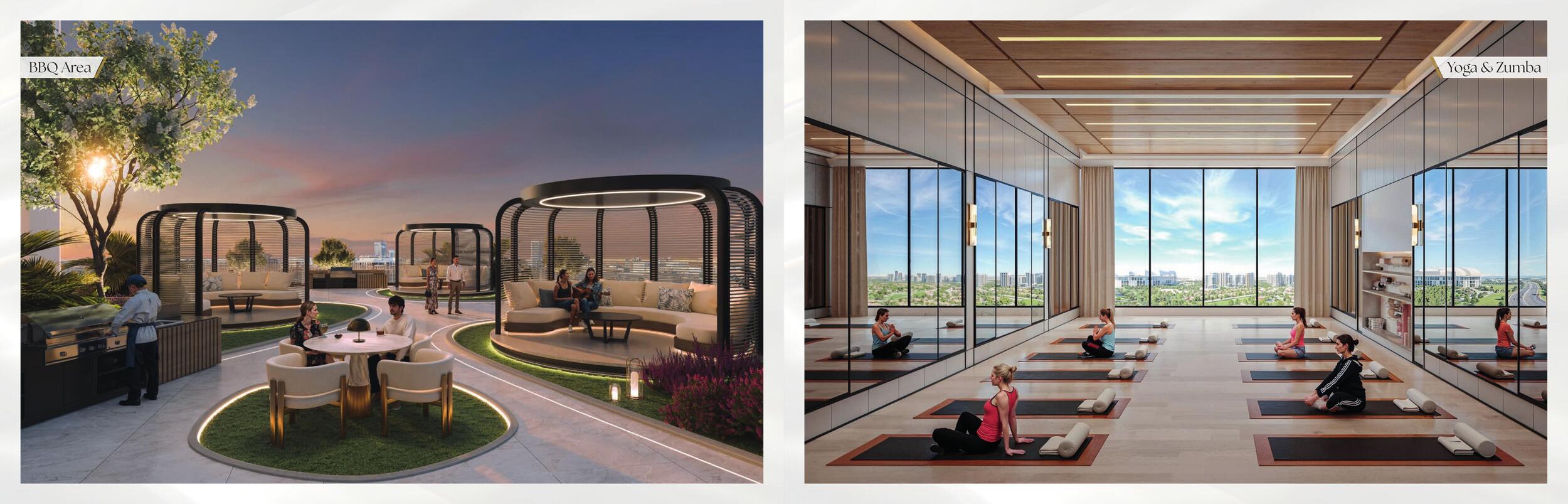 - Indoor & outdoor gym, yoga & zumba studios