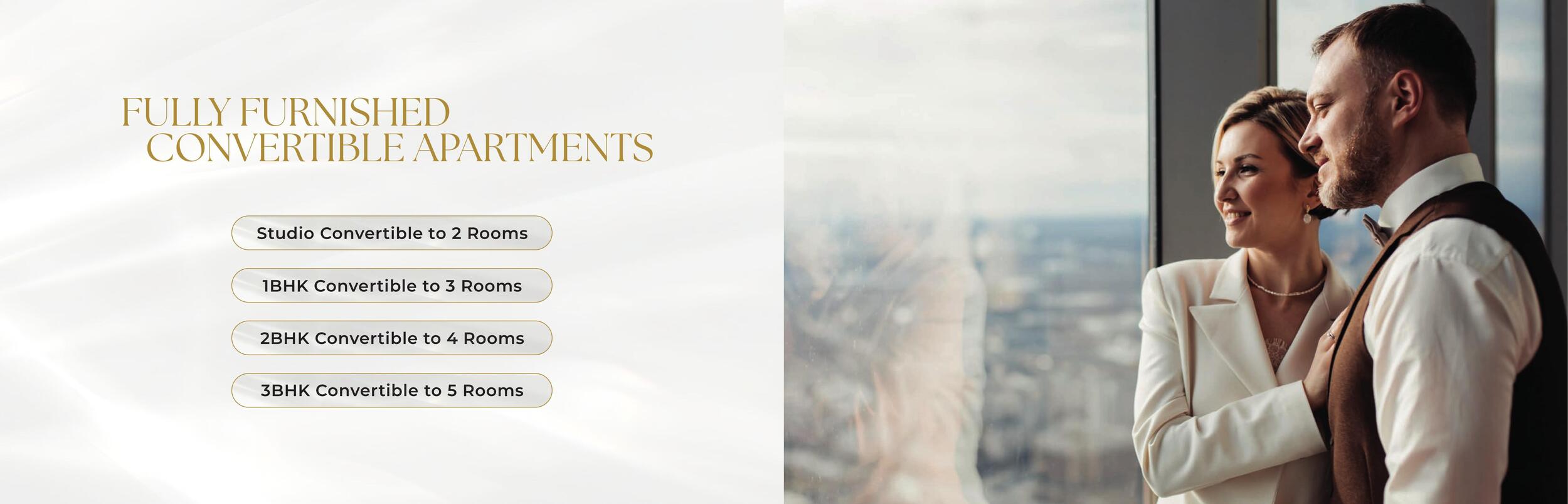 - Fully furnished, convertible floor plans