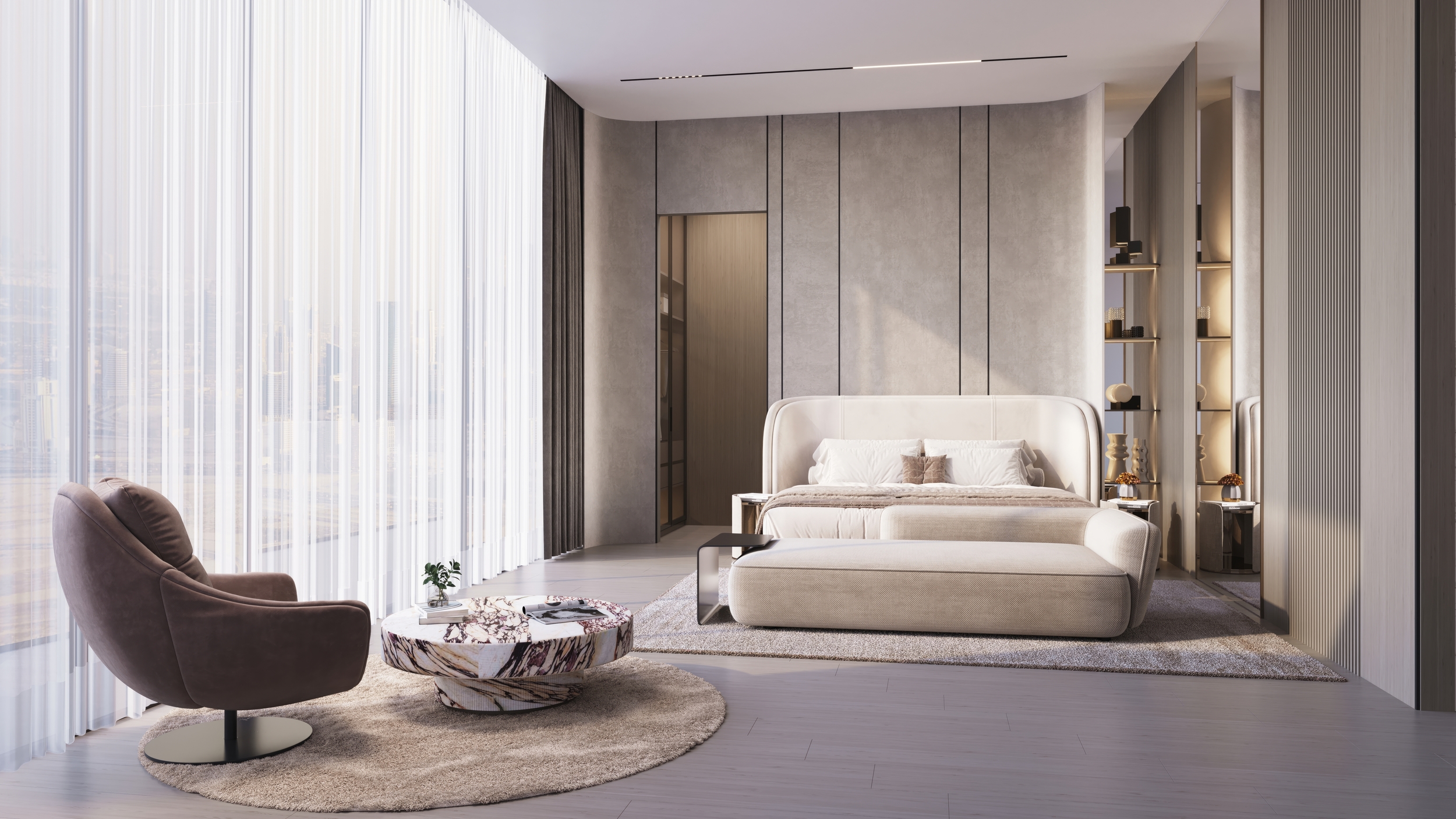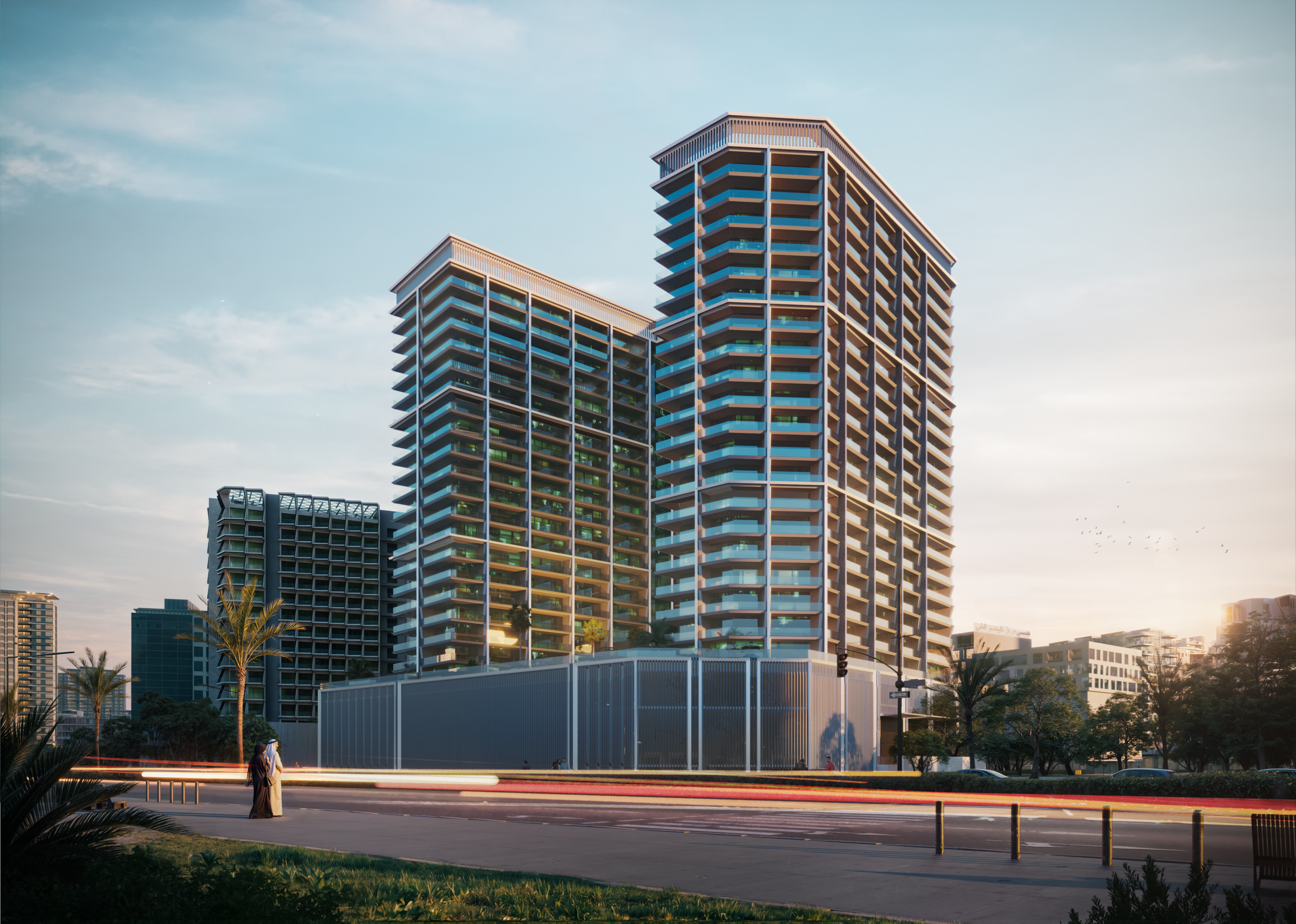 - Signature Binghatti architecture, known for its sculptural forms and modern fluidity