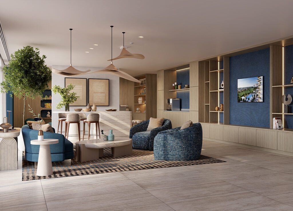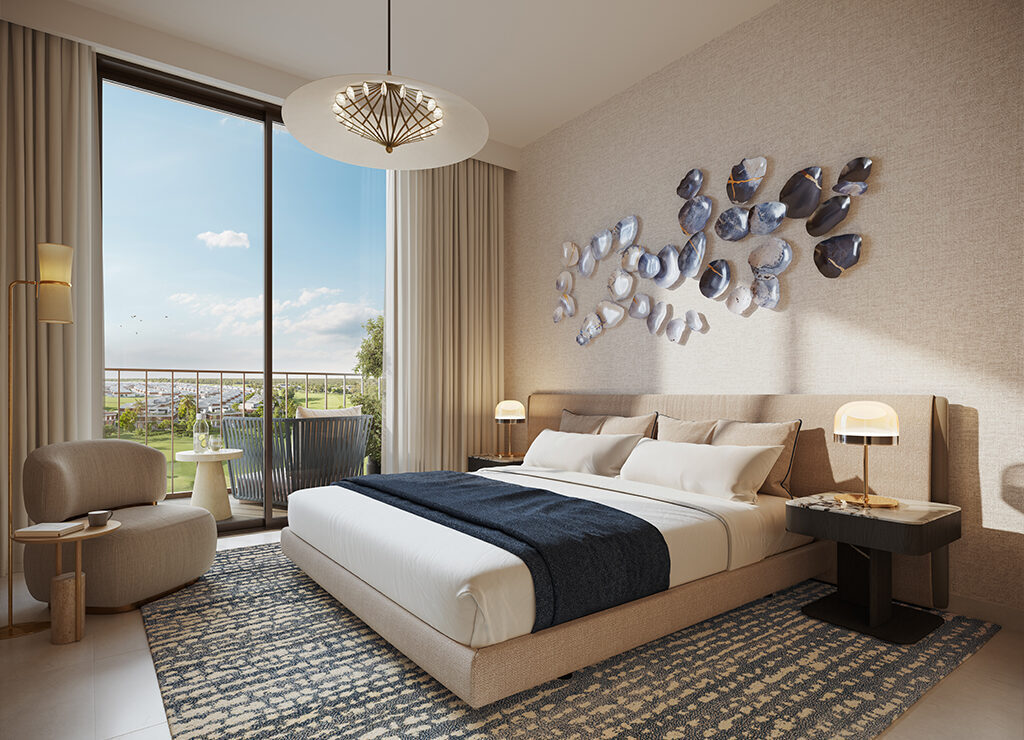- Each residence features spacious balconies with panoramic golf course views, open-plan living areas, and interiors adorned with rich wood finishes, stone accents, and calming earthy tones. Floor-to-ceiling glass maximises natural light and frames uninterrupted green vistas.