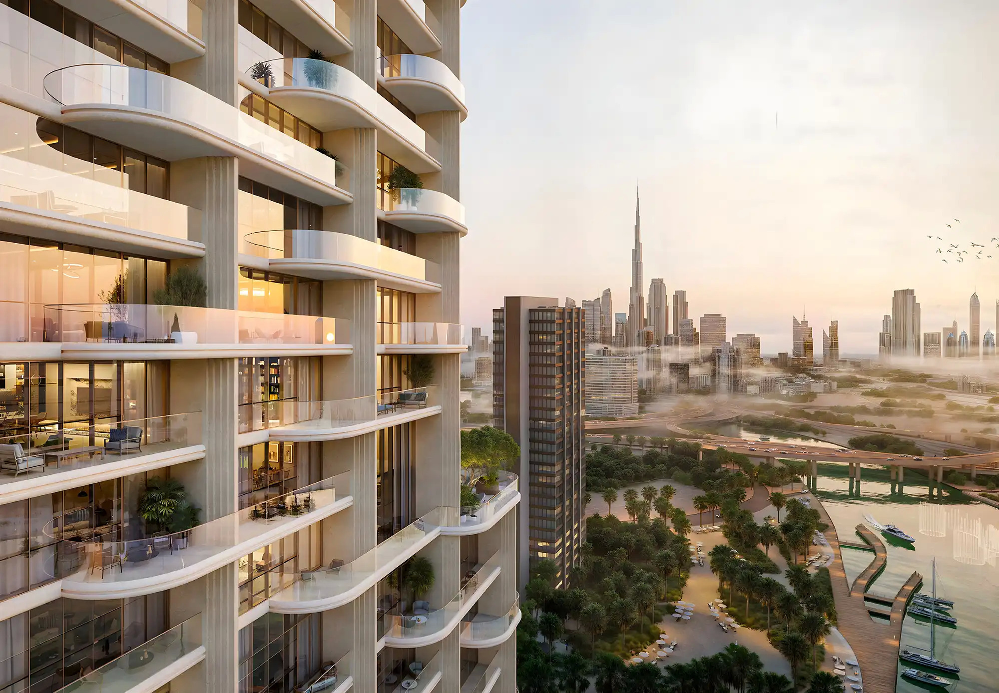 - Direct waterfront access with uninterrupted views of Dubai Creek & skyline