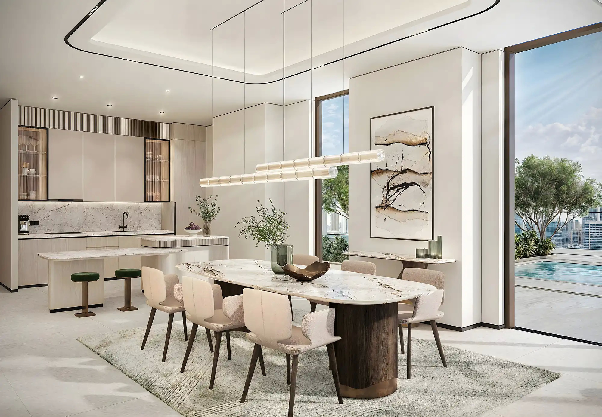 - Exclusive Sky Villas & Penthouses with double-height interiors and panoramic views
