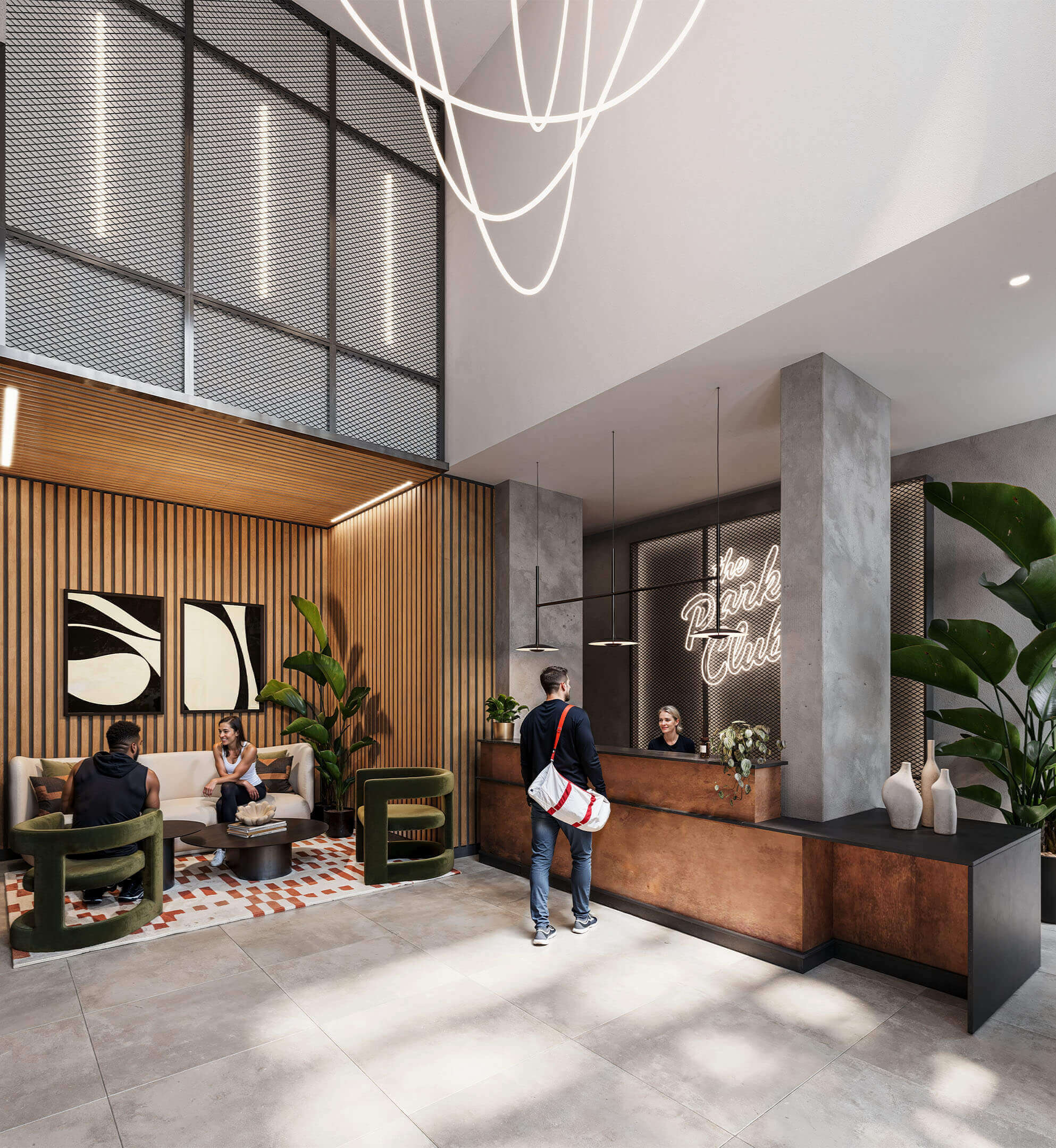 Residents enjoy exclusive access to The Park Club, offering a 16 m swimming pool, spa, gym, yoga studio, co-working spaces, and rooftop terraces.